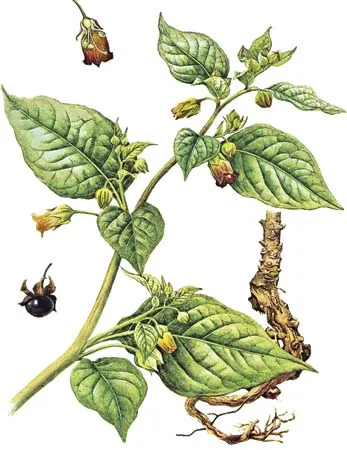 وفقًا للأسطورة، قام جنود مكبث بتسميم الدنماركيين الغزاة بالنبيذ المصنوع من ثمار الهالة القاتلة. في الواقع، فإن حلاوة التوت تجذب غالبًا الأطفال والكبار غير المدركين لتناول هذا النبات القاتل. نبات الهالة القاتلة، الذي ينمو طبيعياً في المناطق الخشبية أو الضائعة في وسط وجنوب أوراسيا، يتميز بأوراقه الخضراء المُجَعَّدة وثماره اللامعة السوداء بحجم الكرز. تحتوي الهالة على الأتروبين والسكوبولامين في سيقانها وأوراقها وثمارها وجذورها، وتسبب شلل في العضلات الغير إرادية في الجسم، بما في ذلك القلب. حتى الاتصال المباشر بالأوراق قد يسبب تهيج الجلد.