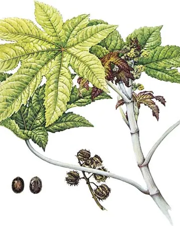مزروع على نطاق واسع كنبات زينة، فول الخروع هو نبات جذاب موطنه أفريقيا. بينما تُعدّ البذور المعالجة مصدر زيت الخروع، إلا أنها تحتوي طبيعياً على سم الريسين وهي قاتلة في كميات صغيرة. يكفي بذرة واحدة أو اثنتان لقتل الطفل، ويصل العدد إلى ثماني بذور لقتل البالغ. يعمل الريسين عن طريق تثبيط تخليق البروتينات داخل الخلايا وقد يسبب القيء الشديد، والإسهال، والتشنجات، وحتى الموت. تم استخدام السم في عام 1978 لاغتيال جورجي ماركوف، صحفي تنديد بحكومة بلغاريا، وتم إرساله إلى عدة سياسيين أمريكيين في محاولات إرهابية فاشلة. ويعود معظم الوفيات إلى الابتلاع العرضي من قبل الأطفال والحيوانات الأليفة.