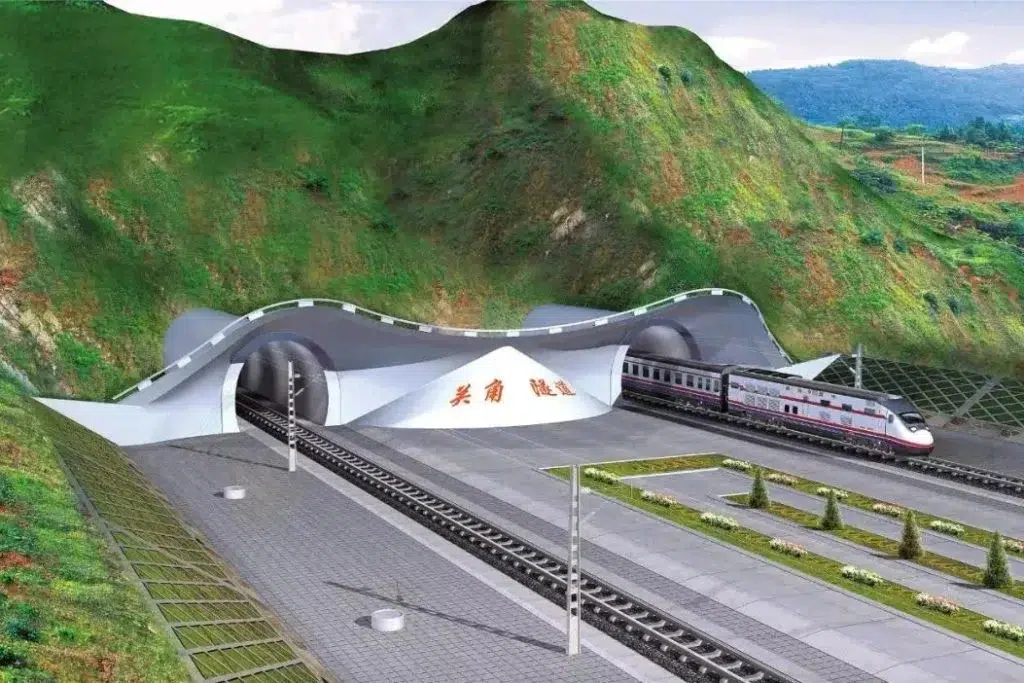 بطول 32.7 كم، يعبر جبال قوانجياو في شمال غرب الصين ويعتبر أطول نفق سكة حديدية على هضبة في العالم. افتتح في عام 2014 ويساهم في تخفيض وقت الرحلة عبر المنطقة الجبلية بشكل كبير.