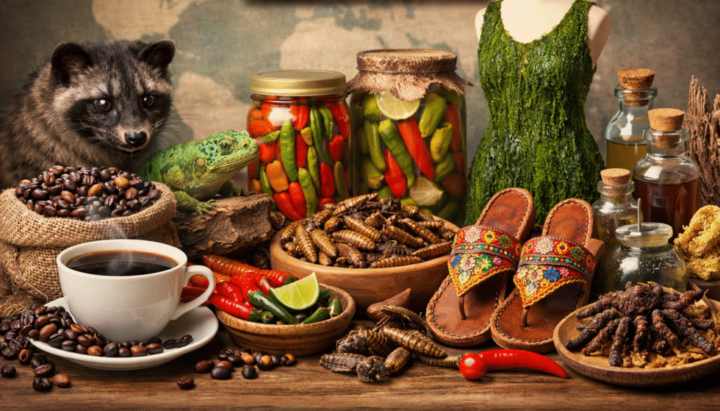 TAGGED: أغرب صادرات الدول, البيض المزخرف, الحشرات للأكل, الدم البشري, الزواحف الحية, الشوكولاتة الغريبة, تجارة غير متوقعة, قهوة لوبوكس, مقابر الحدائق, منتجات غريبة, مياه فيجي