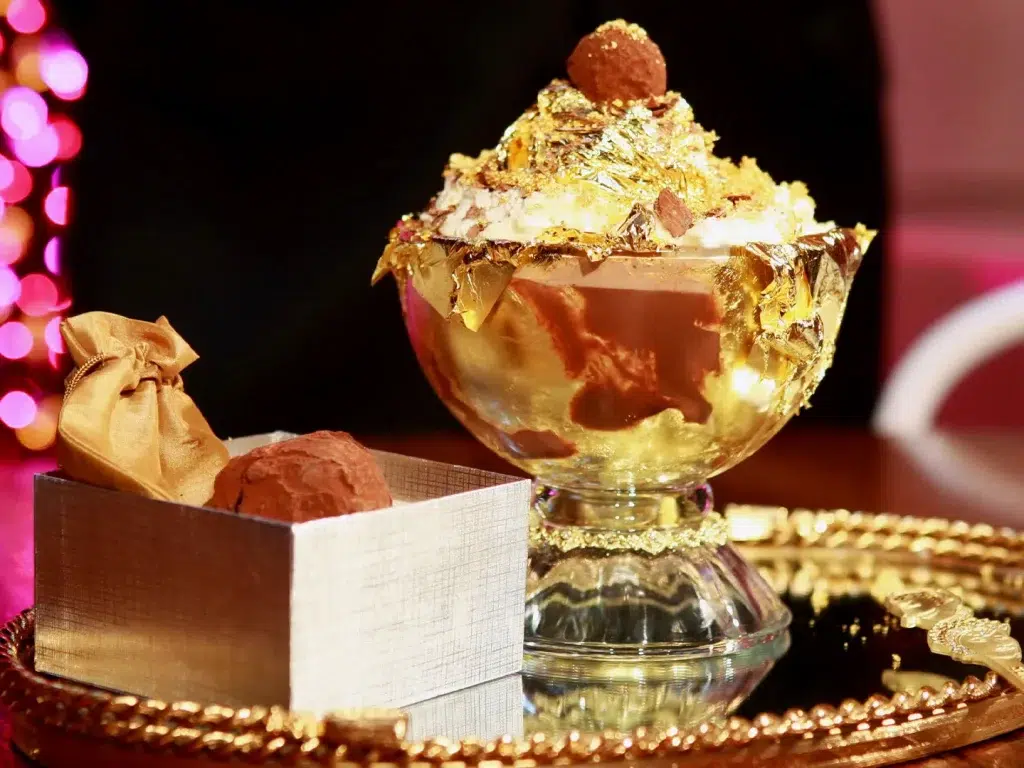 في مقهى سيرينديبيتي بمدينة نيويورك، يقدم “فروزن هاوت شوكولات” الذي يعد أغلى حلوى مجمدة في العالم. يتم تحضير هذا الطبق باستخدام أنواع نادرة من الشوكولاتة، ويضاف إليها شرائح من الكمأ الفاخر وذهب عيار 24 قيراطًا. يقدم في كأس كريستال من باكارا ومزين بحزام من الذهب عيار 18 قيراطًا وألماس أبيض، مع ملعقة مرصعة بالأحجار الكريمة قيمتها 14,000 دولار.