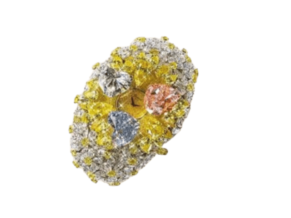 تمثل الألماسات على شكل قلب النقطة المركزية للتصميم، ويحيط بها أحجار الألماس على شكل كمثرى ودائرية. يتميز سوار الساعة بتصميم يدمج بين الأزهار ويتوسطه ماسة صفراء تزن 8.81 قيراط، بالإضافة إلى 26 ماسة صفراء على شكل كمثرى. تتميز الساعة بآلية زنبركية فريدة تفتح الوجه المغطى بالماس عند الضغط عليها، مما يجعل الأحجار الثلاثة على شكل قلب تتفتح كالأزهار لتكشف عن وجه الساعة.