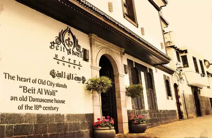 يُعتبر بيت الولي أحد أجمل الفنادق التراثية في دمشق القديمة، ويقع في حي باب توما التاريخي. يمتاز الفندق بتصميمه الدمشقي الأصيل وساحته الداخلية المزينة بالنوافير والفسيفساء.