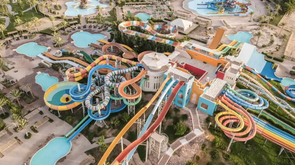 واحدة من أكبر الحدائق المائية في مصر، بتصميم يشبه الغابات الاستوائية، تحتوي على أكثر من 40 منزلقًا ومسبحًا يناسب جميع الأعمار، من أبرز ألعابها “Kamikaze” و“Free Fall” لعشاق المغامرة، إلى جانب نهر هادئ ومسبح أمواج وشاطئ خاص على البحر الأحمر، تعتبر خيارًا مثاليًا للعائلات.