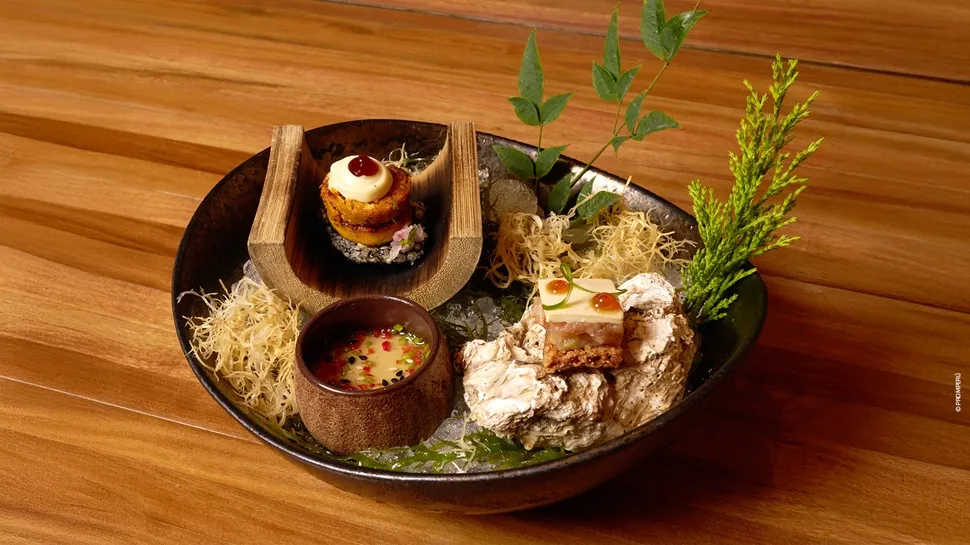 مزج الشيف جاجان أناند بين التوابل الهندية والتقنيات العصرية، فحوّل المأكولات إلى ألعاب حسية باستخدام الرموز التعبيرية بدلاً من أسماء الأطباق. التجربة هنا مليئة بالمفاجآت والمرح.