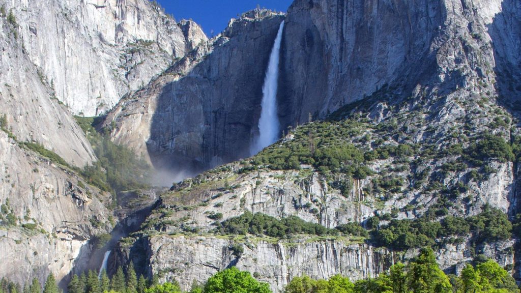 شلالات يوسيميتي تُعتبر أطول شلال في منتزه يوسيميتي الوطني. حيث تنحدر لارتفاع يبلغ 2,425 قدمًا (739 مترًا) من أعلى السقوط العلوي إلى قاعدة السقوط السفلي. تقع في سييرا نيفادا بكاليفورنيا. وتُعتبر وجهة شهيرة داخل المنتزه، خاصةً خلال فصل الربيع عندما يكون تدفق المياه على أعلى مستوى له. تتكون من ثلاثة أقسام رئيسية، وتُعد شلالات يوسيميتي واحدة من المعالم الطبيعية الرائعة التي يجذب بها المنتزه السياح ومحبي الطبيعة.