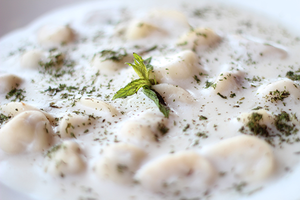 عجينة محشوة باللحم ومطهية باللبن، طبق تقليدي دافئ ولذيذ.