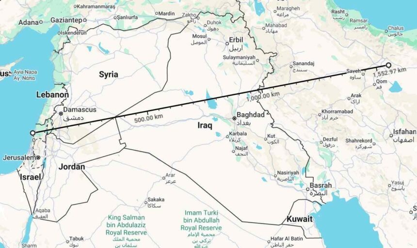 تعتبر المسافة بين إيران وإسرائيل من العوامل المهمة في دراسة الجغرافيا السياسية والأمنية في منطقة الشرق الأوسط.