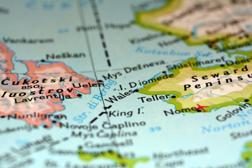 يفصل مضيق بيرينغ بين روسيا وألاسكا بمسافة 3.8 كيلومتر فقط. في الشتاء، يتجمد المضيق مما يجعل العبور مشياً ممكناً، لكن ذلك غير آمن وغير قانوني.